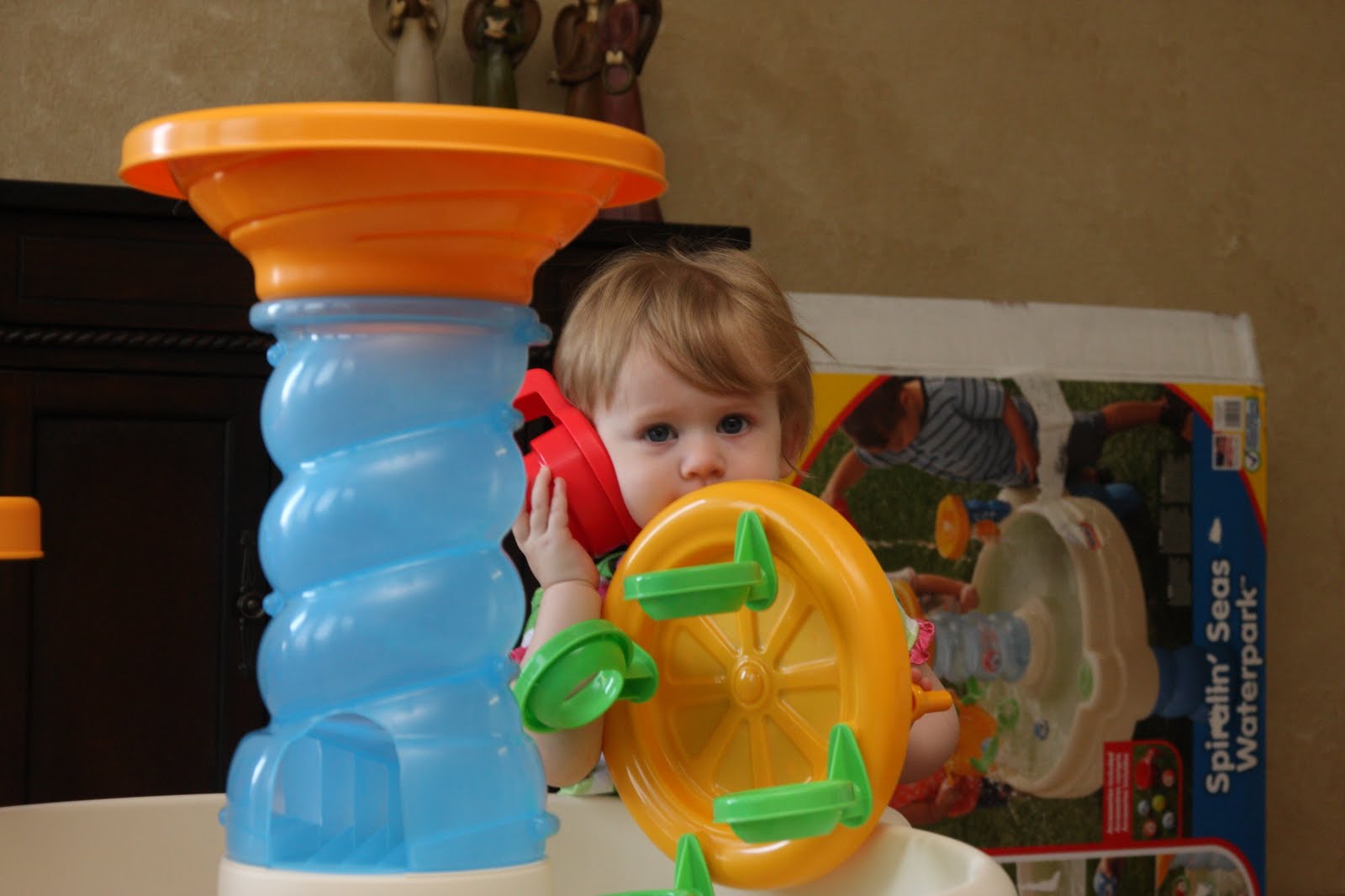 After playing with the water toy, Helen decided she wanted to be by Lauren.... only a few steps away. She was distracted by the phone in her hand and let go to head for Lauren. Then she panicked and dropped the phone! Lucky for me, I was already taking pictures, so I had my camera up and ready!